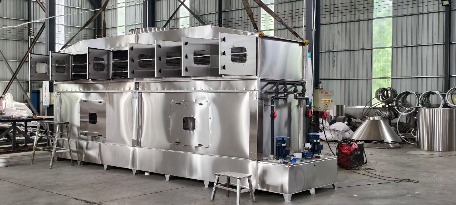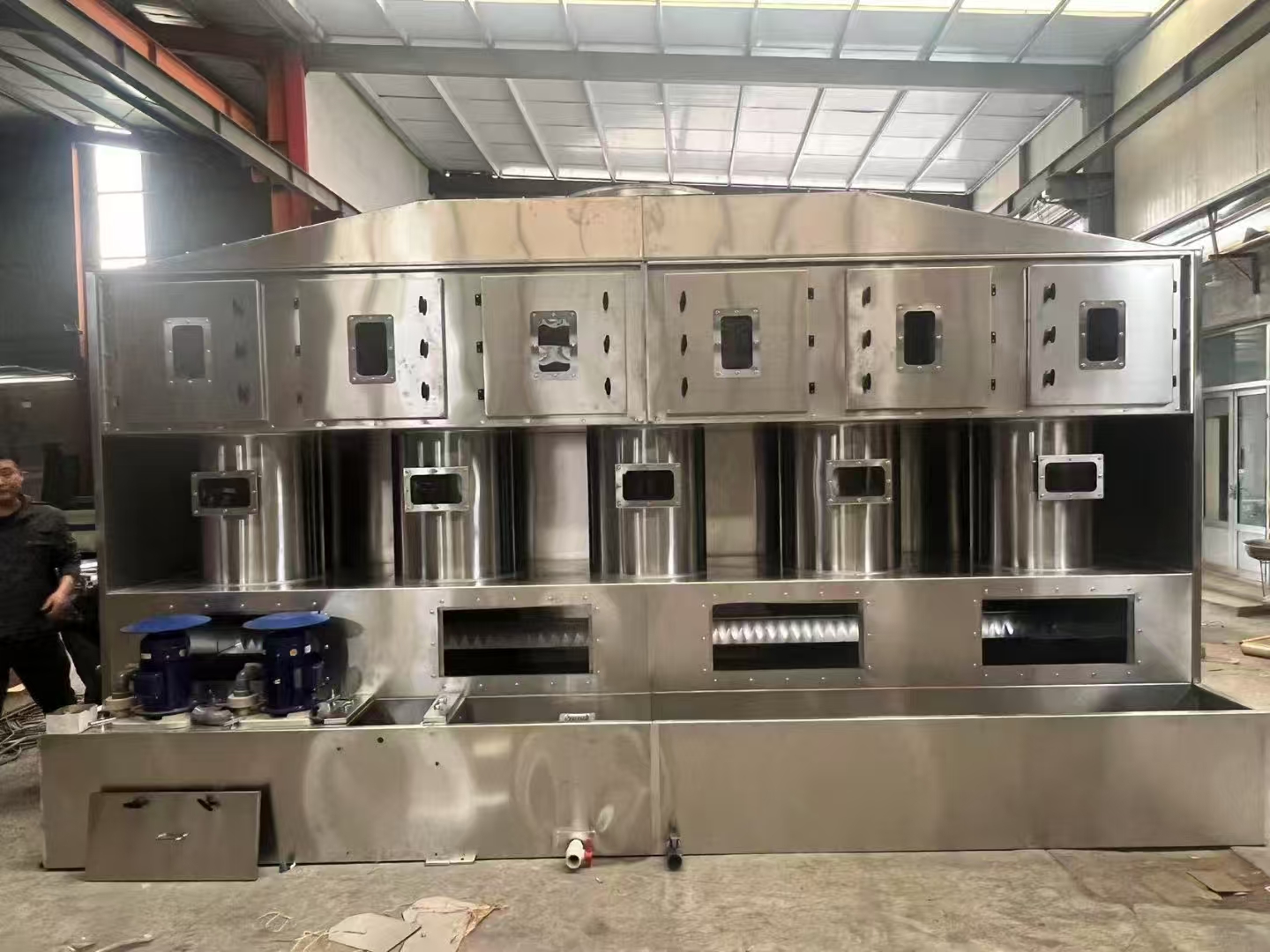受到离心作用力,使的该装置产生侧向向心移动,由于粉尘废气在水中滞留较长的时间,所以清洗效率更高,有效解决了传统喷淋设备易堵塞和除尘不的问题。该设备采用动力操作,防止了水泵和喷嘴的阻塞,地提升了生产率,池内的水可以再次利用,不会引起二次污染,还能节省水。在该气旋废气喷淋装置内部装有多个“圆形旋流筒”,并配有率的除雾板。在旋流筒中装有固体填充球,上面一层是用于对水雾进行净化,以实现脱水雾。粉尘废气在气旋废气喷淋装置中呈螺旋状上升,并与各平板上从塔顶来的流体旋流相接触,从而达到除尘的目的。废气中较大的尘埃颗粒在受到离心力而沉降到池中,终通过手工打捞出来并将箱体打扫干净,从而达到净化、达标排放的目的,并且该装置内的水还能再循环利用。